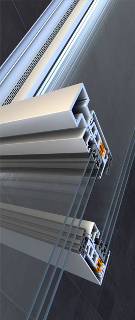 ◘ Širina preklapanja krila samo 47mm kod dvokrilnog kliznog sistema, za maksimalni prolaz svjetlosti i visinom vrata do 3,00 m