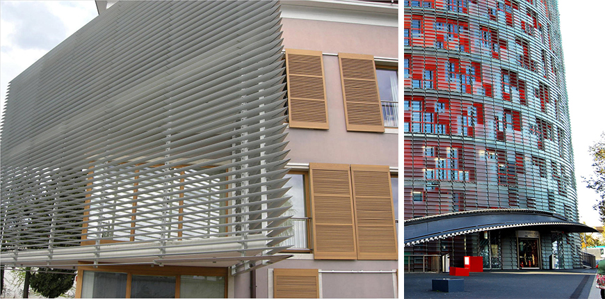 Kombinacijom lamela sa nosačima raznog oblika, formiraju se brisoleji kao efikasna toplotna zaštita svijetlih otvora fasade i objekta.