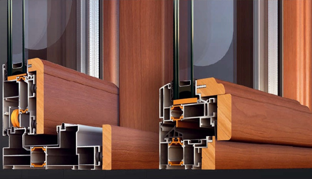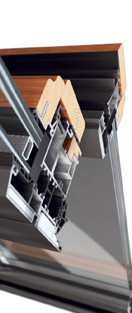 Osnovni konstruktivni materijal prozora je aluminijumski profil sa termoprekidom, koji je sa unutrašnje strane obložen drvenim profilima. Aluminijum spolja štiti drvo od atmosferskih uticaja tako da drvo ostaje nepromijenjenog izgleda i poslije 20-ak godina eksplatacije. Sam spoj aluminijuma i drveta ostvaren je posebnim kopčama koje ne prenose naprezanja do kojih dolazi usljed širenja i skupljanja materijala, te dozvoljavaju cirkulaciju vazduha sprječavajući koroziju usljed kondenzacije.